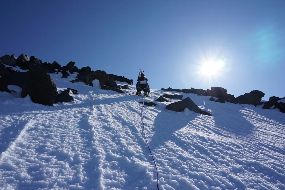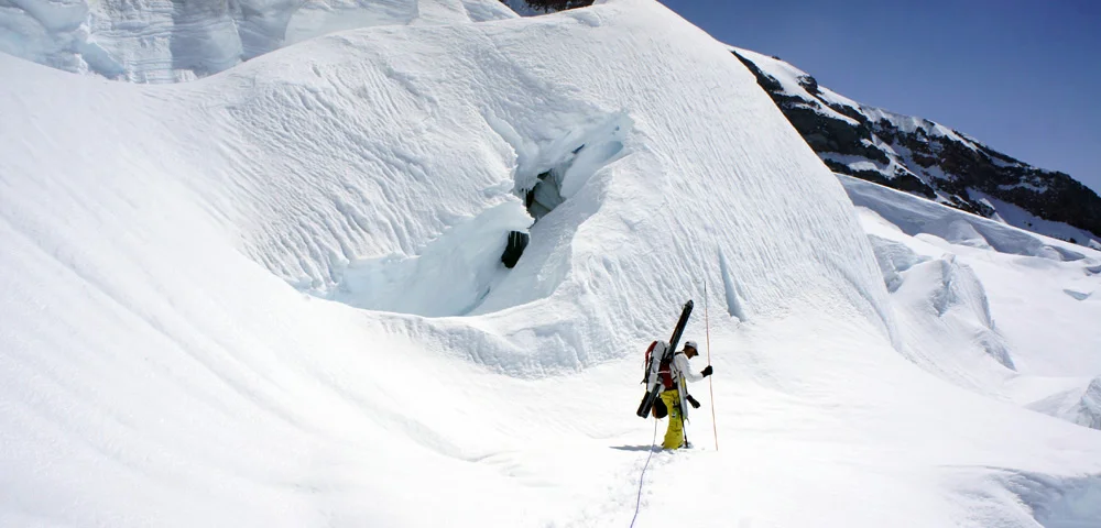 The winters of 2013-2014 were banner snow years with the highest recorded snow accumulation of the past 50 years. Hundreds of feet of snow loaded the glaciers, causing them to accelerate down the mountain. The glacial rush-hour caused new pileups of crevasses, sometimes forging entire new routes. On top of this, dubbed the “ridiculously resilient ridge,” 2015 was an exceptionally dry year in the Pacific Northwest. While we could look forward to an unusually long weather window, only shallow winter snow bridged virgin crevasses on the route.