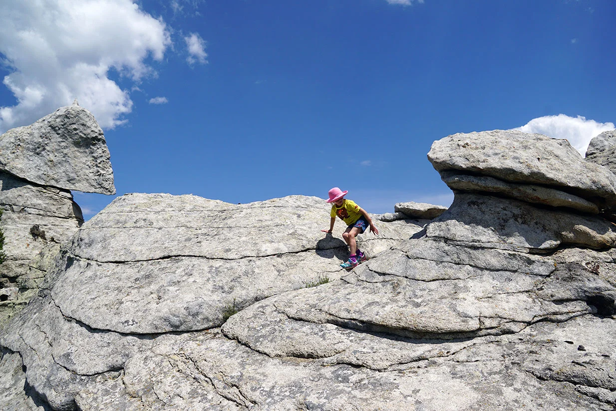 We set up a rope on an isolated stone in Castle Rocks and let the kids take protected round trips up and down the casual slope. My six-year-old struggles to get started, then finds a rhythm, finding holds for his hands and feet. Before he knows it, he’s at the top, flashes a grin and asks to be let down.